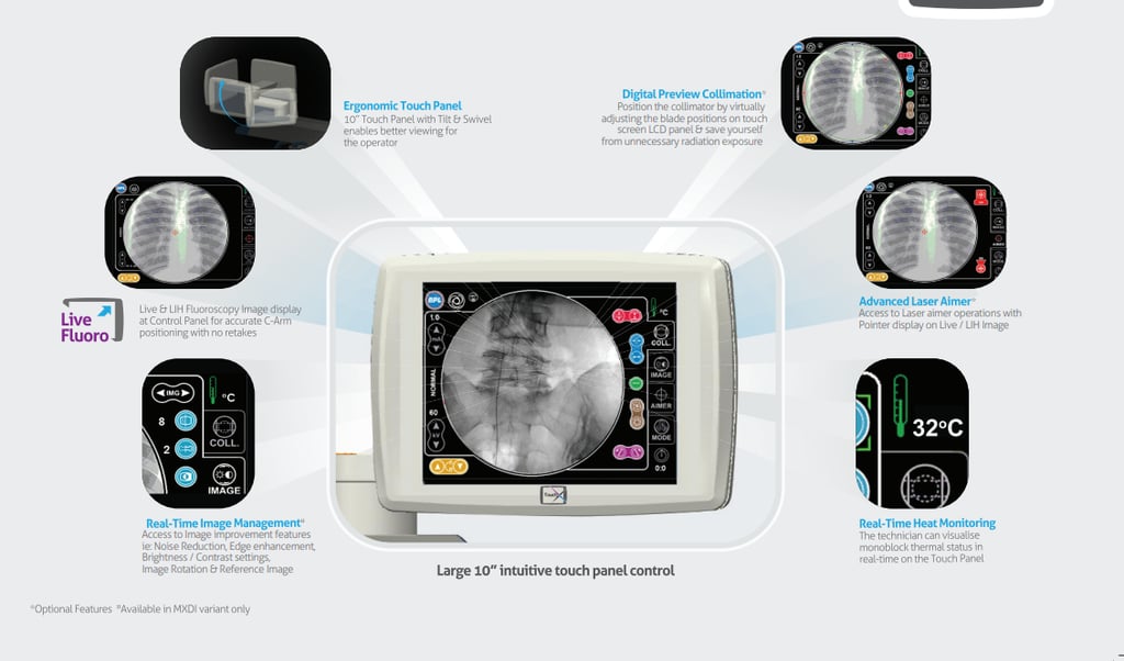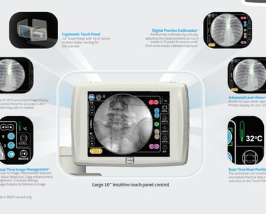 The user-friendly touchscreen interface simplifies operation, providing easy access to various settings such as image acquisition, storage, and real-time fluoroscopy controls.