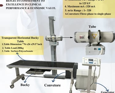 The machine is ideal for routine radiographic examinations, ensuring quick and accurate imaging for daily clinical use.