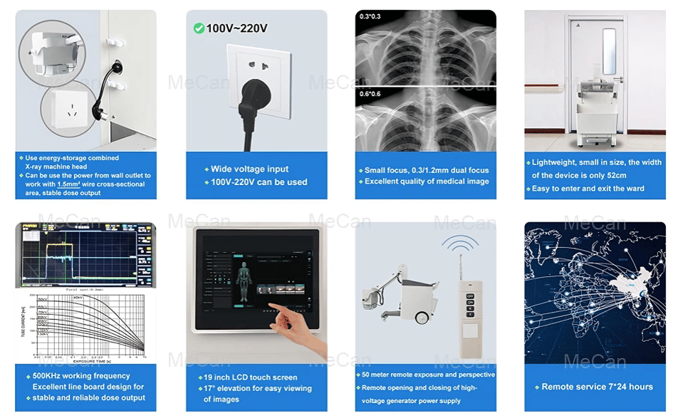 Whether used in hospital wards, emergency rooms, or mobile clinics, this portable X-ray machine meets the needs of various medical facilities and settings, offering flexible imaging solutions for a wide range of applications.