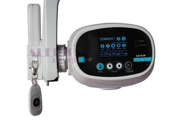 ALERIO DC PRIME is an advanced high frequency DC output Intra-Oral X-Ray compatible with all types of films, phosphor plates, or sensors. The X-ray machine uses an electronic feedback method for control that produces repeatable, crisp dental x-rays. The controls for this unit are located on the Tubehead or can be programmed from a mobile application.