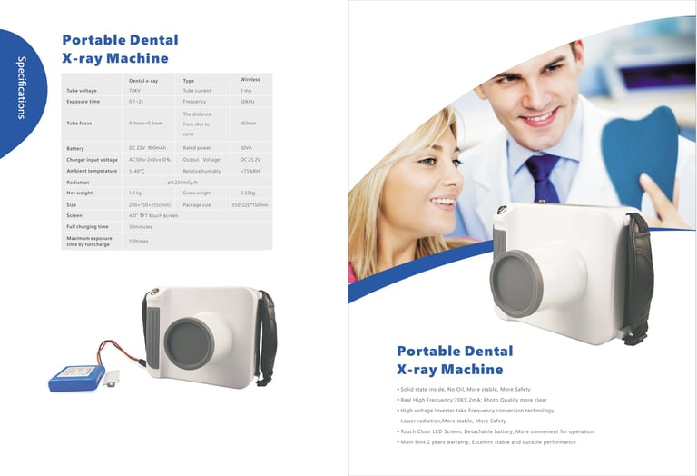 The DXM-01P Rapid Imaging Lightweight Portable Dental X-Ray Machine is an advanced portable X-ray system specifically designed for dental applications. It combines high-quality digital imaging with a compact, lightweight design, making it ideal for both in-office and mobile dental imaging. This system allows dental professionals to perform precise imaging quickly and efficiently, enhancing patient care while reducing exposure to radiation. Its portability ensures ease of use in various settings, including dental clinics, mobile units, and even for home visits in special cases.