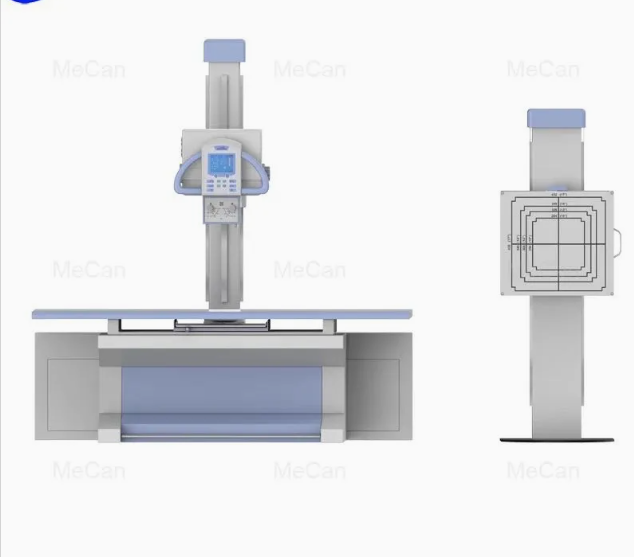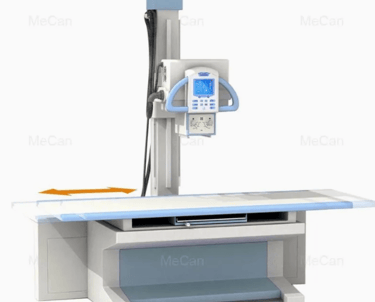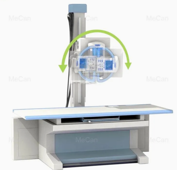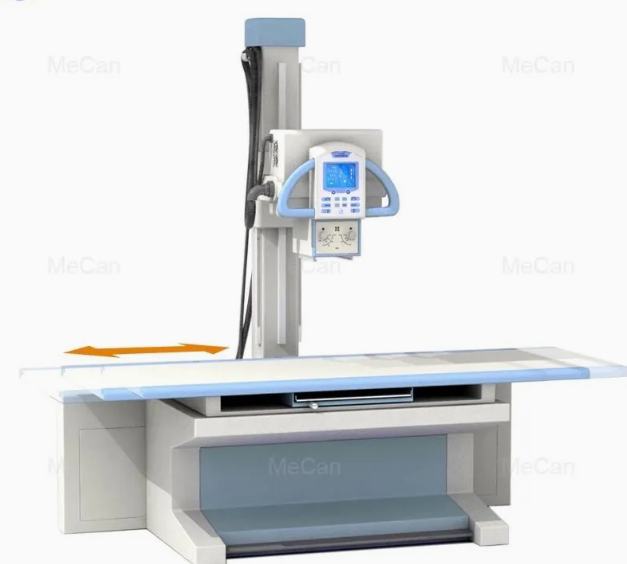 The machine often includes an adjustable arm and patient positioning support, allowing for precise and comfortable positioning of patients, ensuring optimal imaging for different body parts.