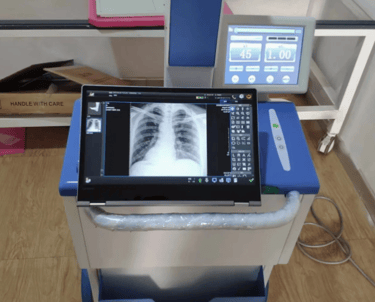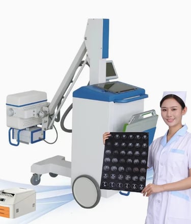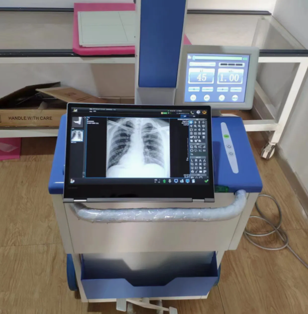Mobile and Portable Design: One of the system's main advantages is its mobility. The machine is mounted on a mobile cart with wheels, allowing for easy transport across hospital wards, emergency rooms, or even out to the field, where access to fixed X-ray systems might be limited.
