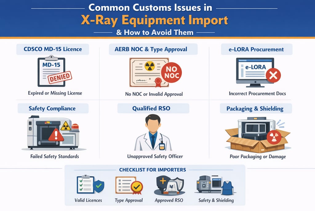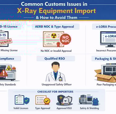 Learn the most common customs issues in X-ray equipment import in India and how to avoid ADC delays with proper CDSCO, AERB, and e-LORA compliance.