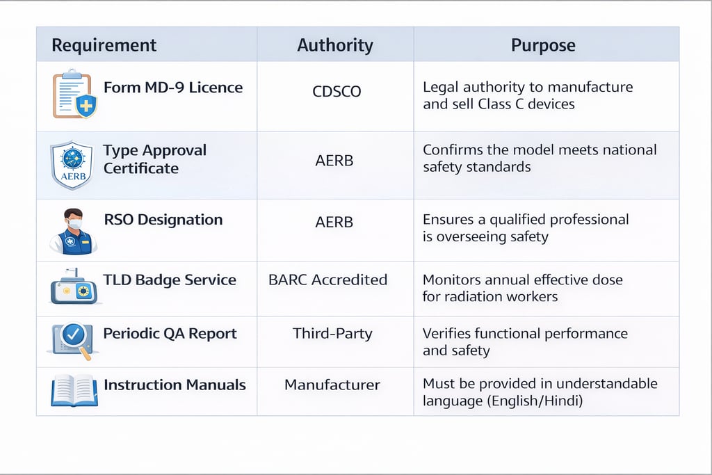 In India, the radiological safety of X-ray equipment is governed by the Atomic Energy (Radiation Protection) Rules, 2004, while device quality is regulated by the CDSCO.