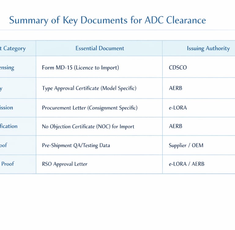 Form MD-15 (Grant of Licence to Import): This is the official document issued by the CDSCO after processing the MD-14. It is mandatory for ADC clearance at the port of entry.