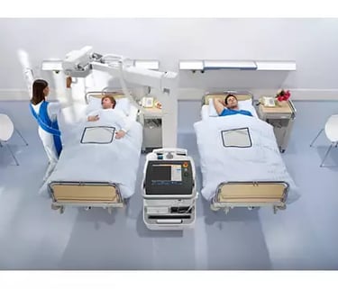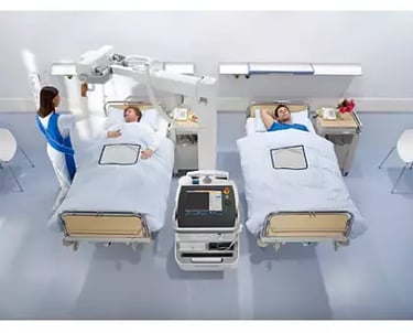 In situations where patients cannot be transported, such as those in intensive care or elderly patients in nursing homes, this portable X-ray machine can be brought directly to the patient's bedside for quick and efficient imaging.
