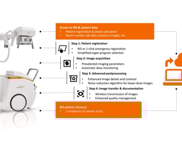 Seamless PACS Integration: MOBILETT Elara Max integrates with PACS (Picture Archiving and Communication System), allowing for easy storage, retrieval, and sharing of images across the healthcare facility.