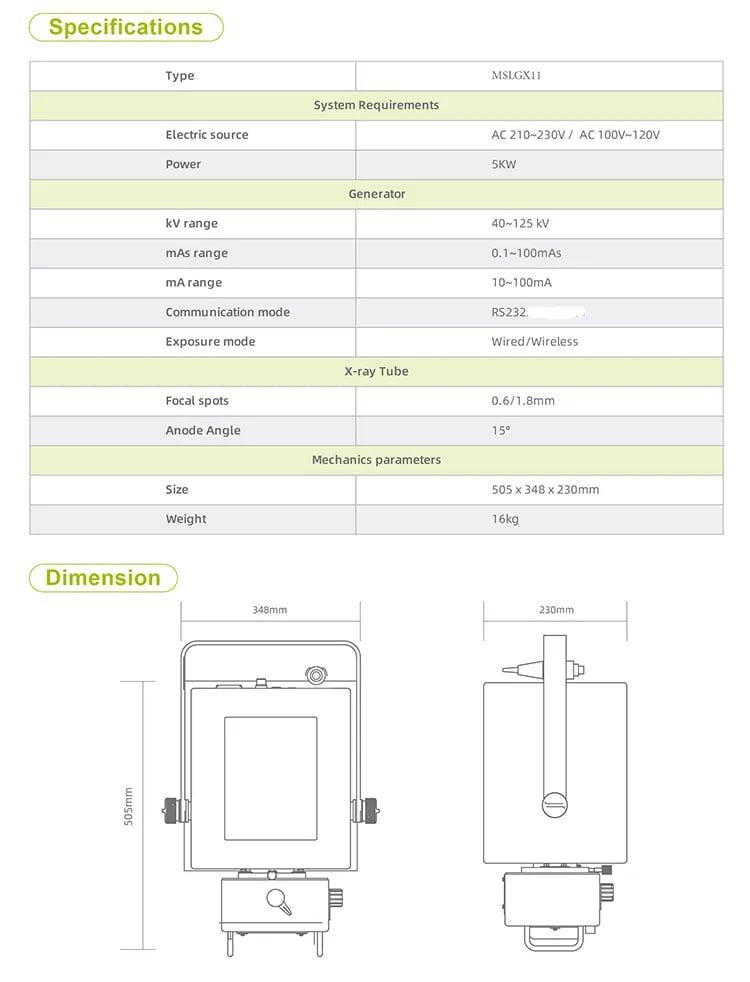 The 5kW power output ensures adequate X-ray penetration for a wide range of applications, including dense tissue imaging. It allows for clear imaging even in complex diagnostic scenarios, such as trauma cases or thoracic imaging.