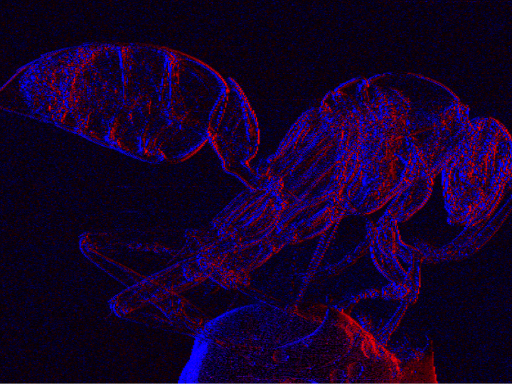 Retrieved phase gradient maps of a wasp (colors represent positive and negative gradient)