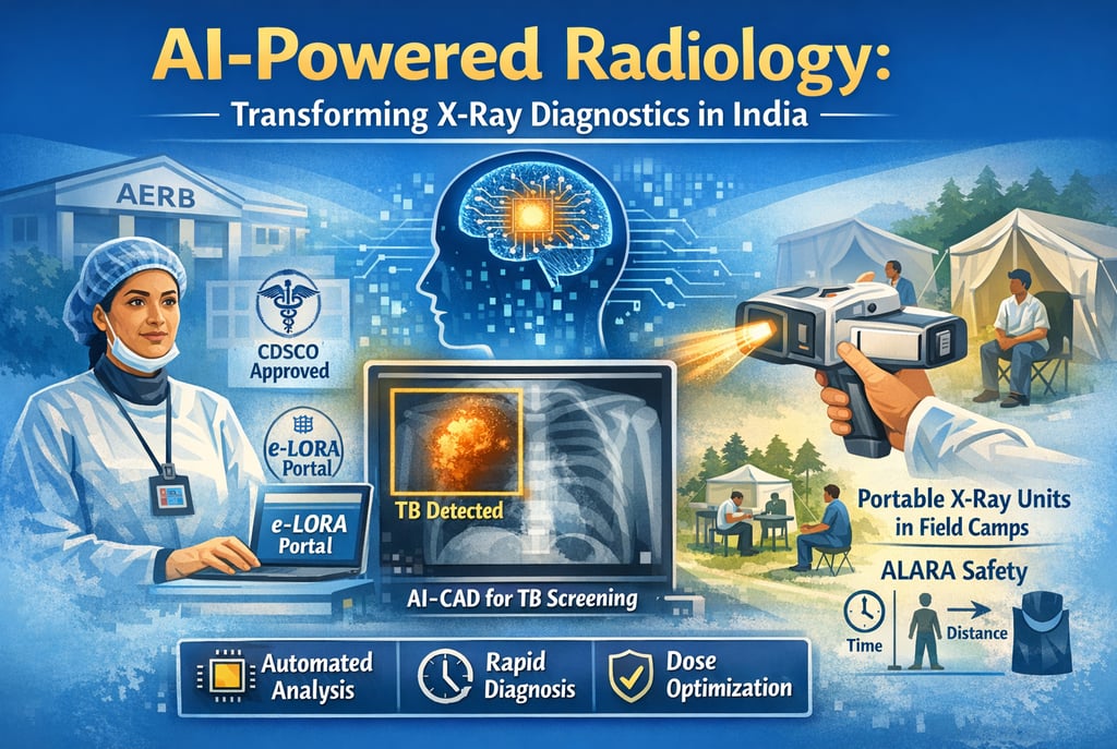 The mission of the Atomic Energy Regulatory Board (AERB) is to ensure that the use of ionizing radiation in India does not cause undue risk to the health of people and the environment. In recent years, this mission has intersected with a technological revolution: the integration of Artificial Intelligence (AI) and Computer-Aided Detection (CAD) software with modern X-ray systems. This transformation is particularly visible in the deployment of ultra-portable (UP) and handheld X-ray devices for community-based screening. By automating image interpretation and optimizing dose efficiency, AI is bridging the gap between advanced diagnostics and resource-limited settings, fundamentally changing how India manages public health crises like Tuberculosis (TB).